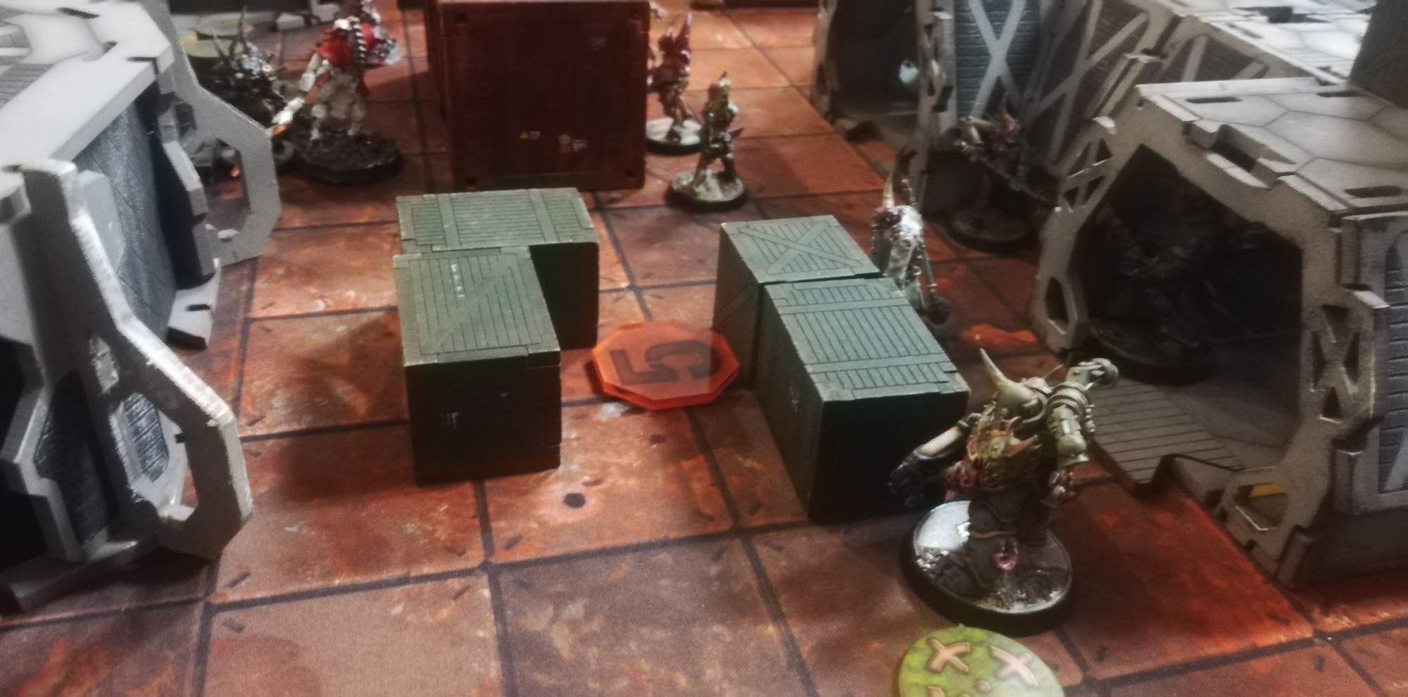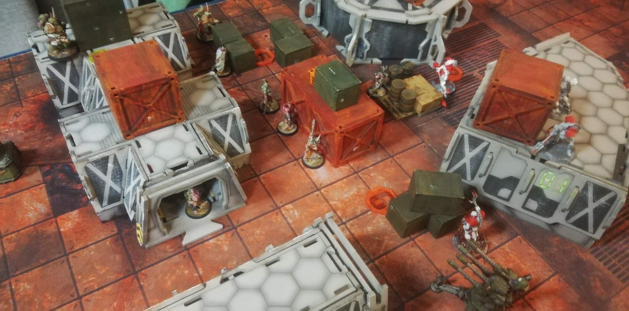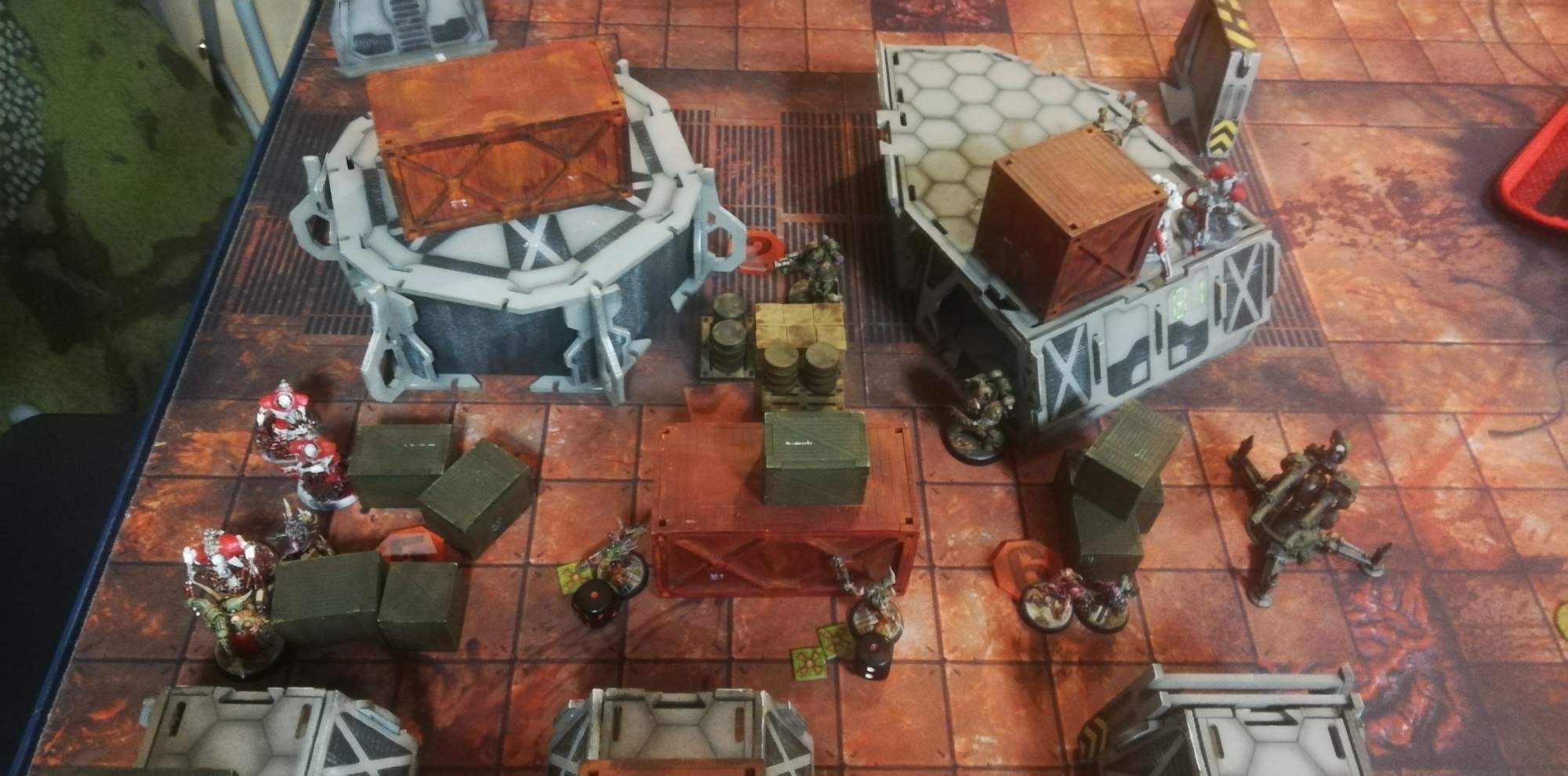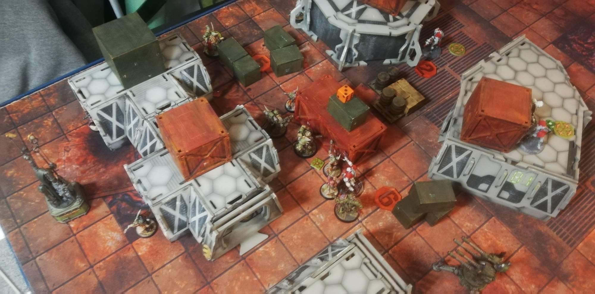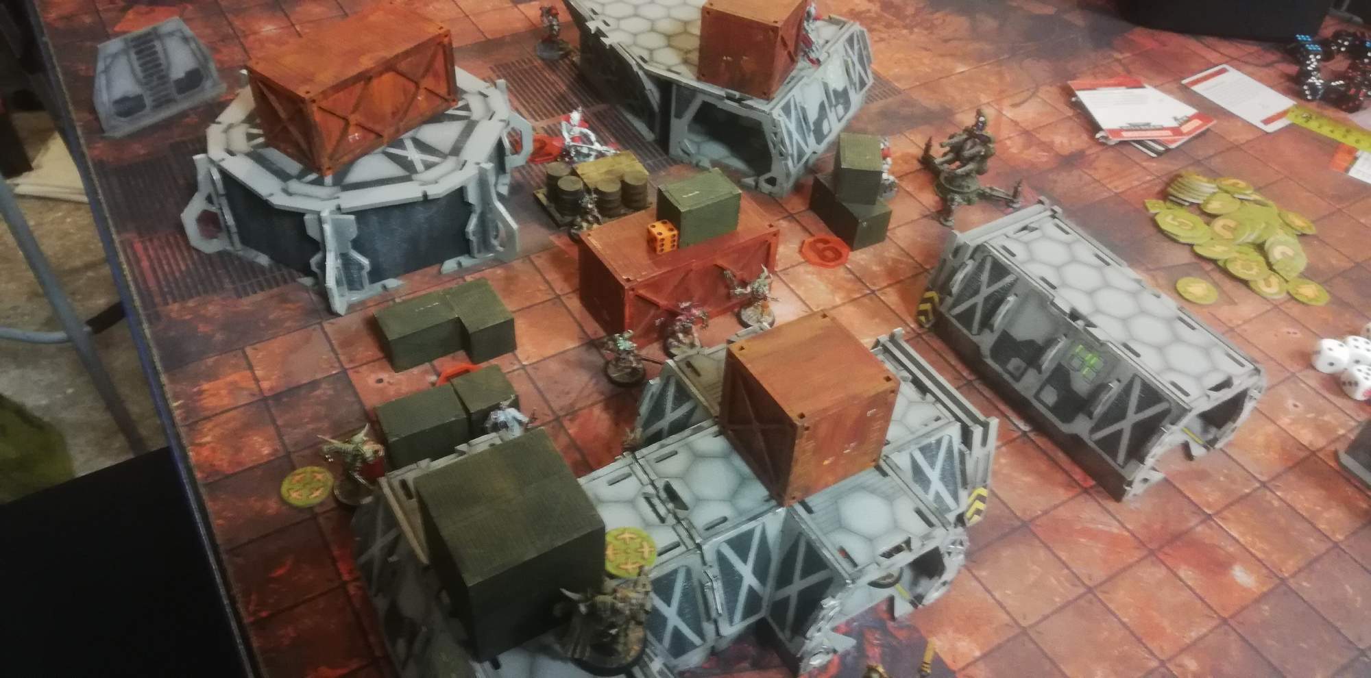Hrá sa misia Sweep and Clear, takže na stole sú 4 obektivy, kto ich drží na konci hry má za každý 3VP. Rovnako 1VP možno získať za každý zabitý model zo súperovho teamu. Tak pekne vyložíme stôl (aj s novými terénmi) a môžeme ísť na to.