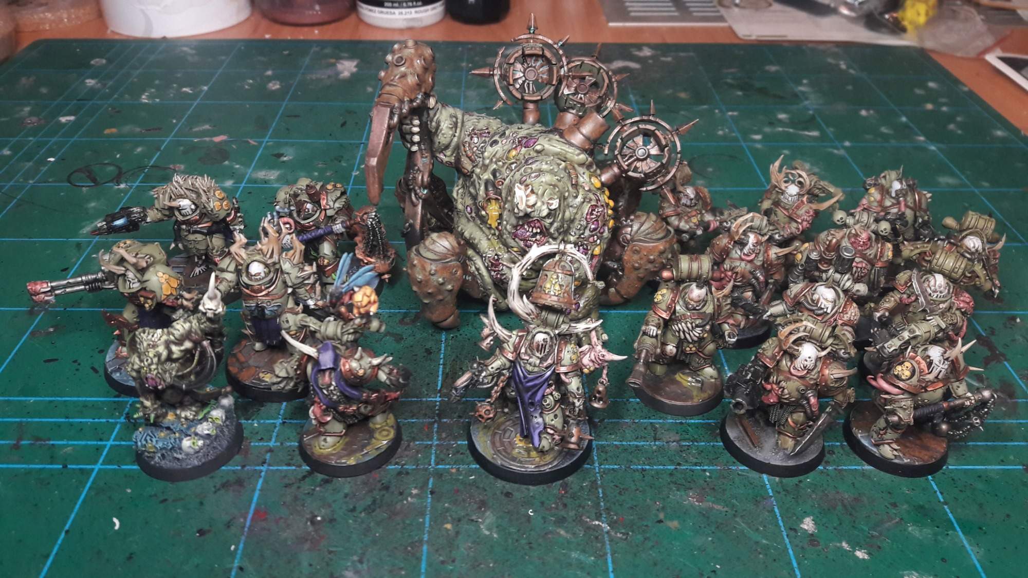 Musím priznať, že za posledný rok a pol je Kill team pre mňa asi najhranejším formátom (3 odohraté ligové sezóny), nečudo je dosť rýchly a postupne sa vytvorila komunita fajn ľudí, ktorých baví ho hrať. Či mi ako človeku s obmedzeným časom na hranie vyhovuje. Tohto roku ako som postupne menil warbandy a ich leadrov sa ro zazelenalo a povedzme, že ako začiatok novej DG k prichádzajúcemu codexu to nie je zlé. 4 Blighlordi, 13 Plague Mariňíkov a klonvertený kúzelník.